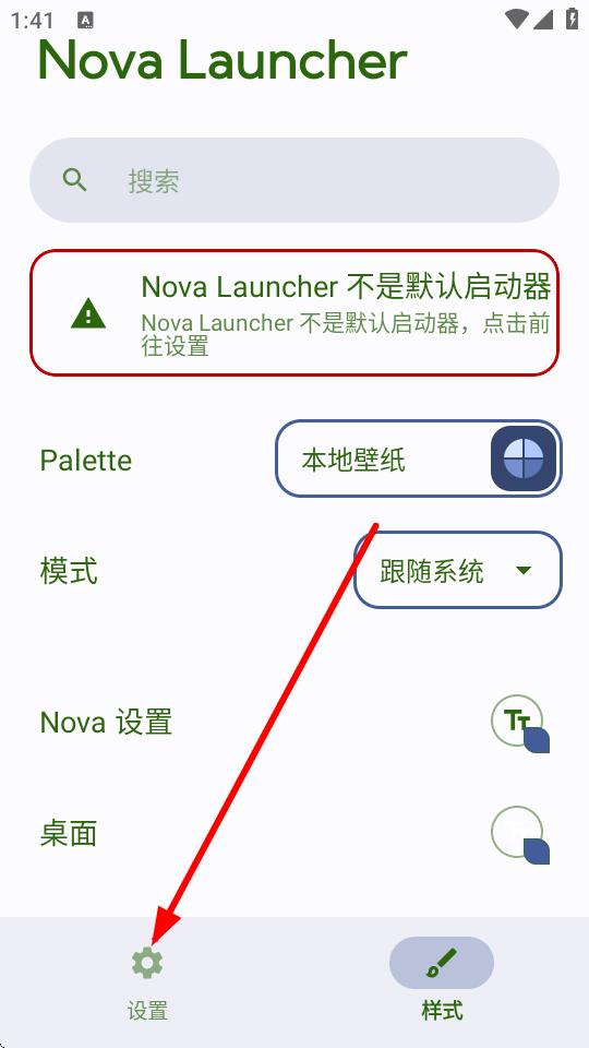 1、打开Nova,点击底部的设置按钮进入设置界面。
