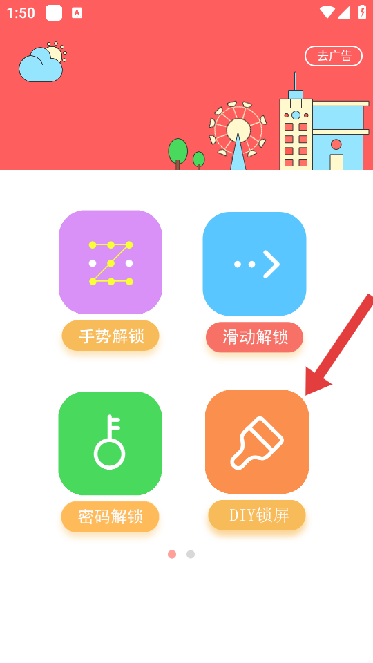 1、在锁屏大全主界面,点击DIY锁屏的选项,进入DIY锁屏设置页面。