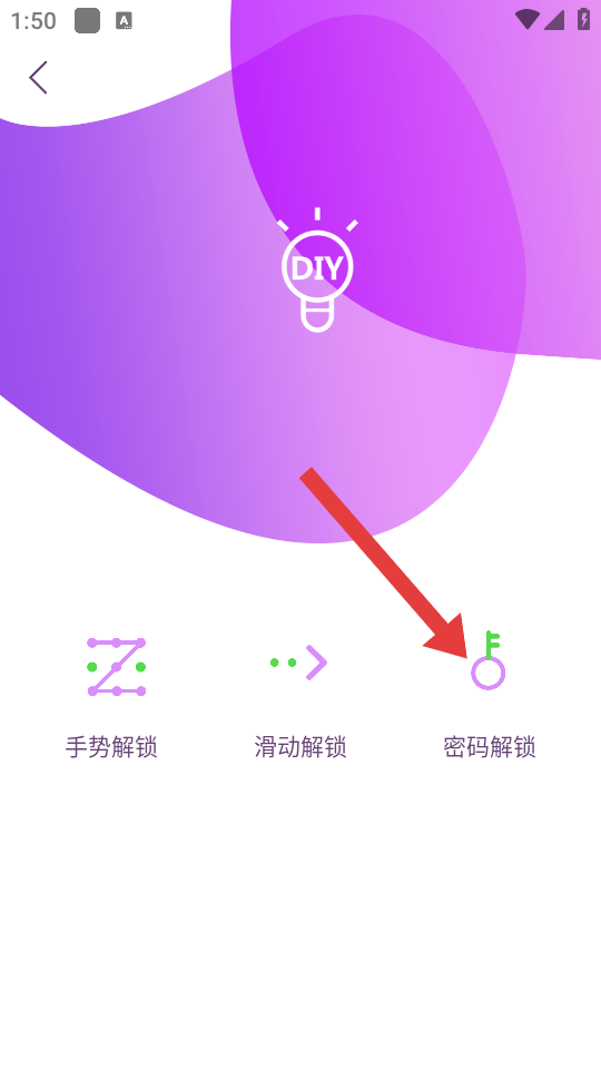 2、在DIY锁屏设置页面,点击密码解锁选项,进入DIY密码设置界面。