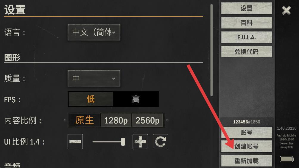 2、在右侧的选项栏中,找到并点击创建帐号按钮。
