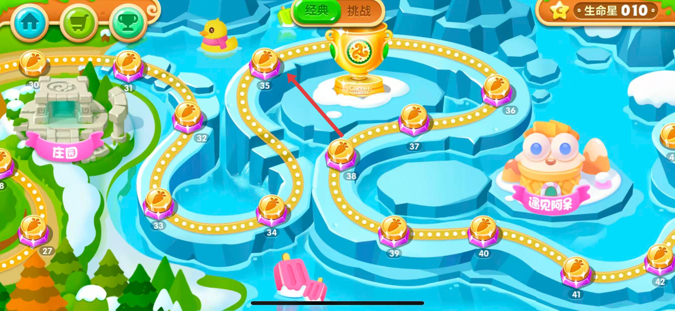 2、进入关卡地图,点击35关的图标,进入第35关详情界面。