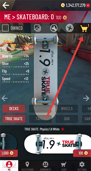 1、在True Skate游戏界面点击左下角“ME”,进入个人页面。