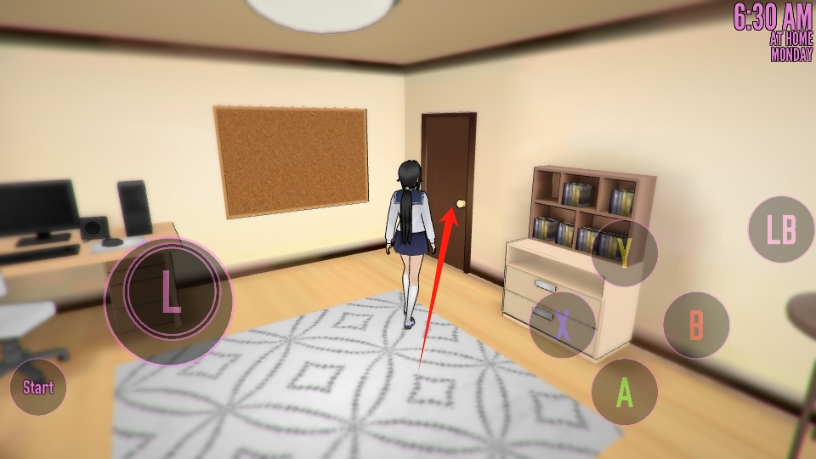 2、朝着箭头指向的门移动并互动,可离开当前场景,前往新的地点,推进了相关剧情。