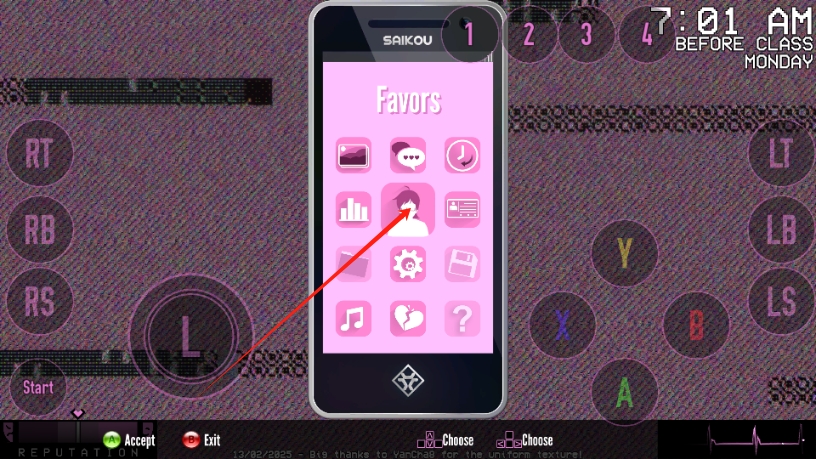 3、点击手机界面中的对应功能图标,使用Favors功能,建立关系,提升游戏声望和进展。