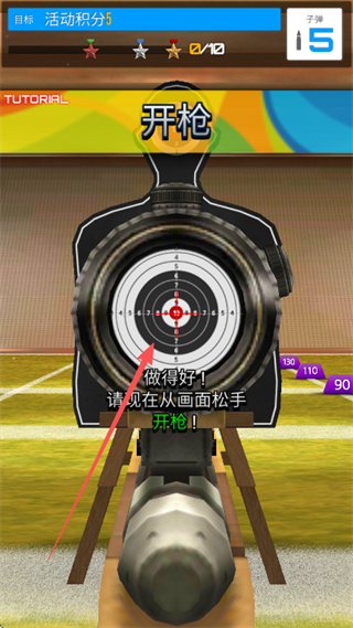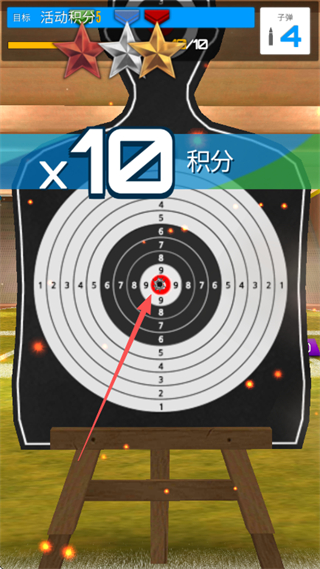 2、瞄准靶心开枪,命中可积累积分,提升活动积分。