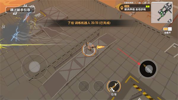 3、继续消灭训练机器人,达成“了结训练机器人20/20”的目标,提升战斗能力。
