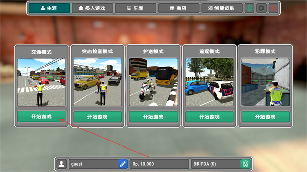 1、包含交通模式、突击检查模式等多种玩法,可根据需求选择开始游戏体验对应内容。