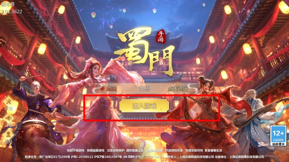 1、在蜀门游戏登录界面,点击进入游戏按钮进入游戏。