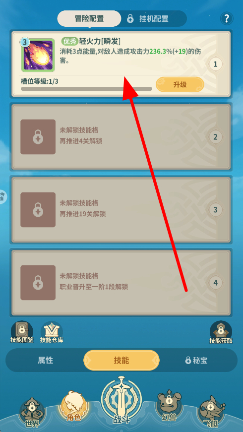 2、技能界面,能查看已拥有的技能,了解技能的效果与消耗等信息,还可对技能进行升级操作,增强技能的威力,让角色在战斗中更具优势。