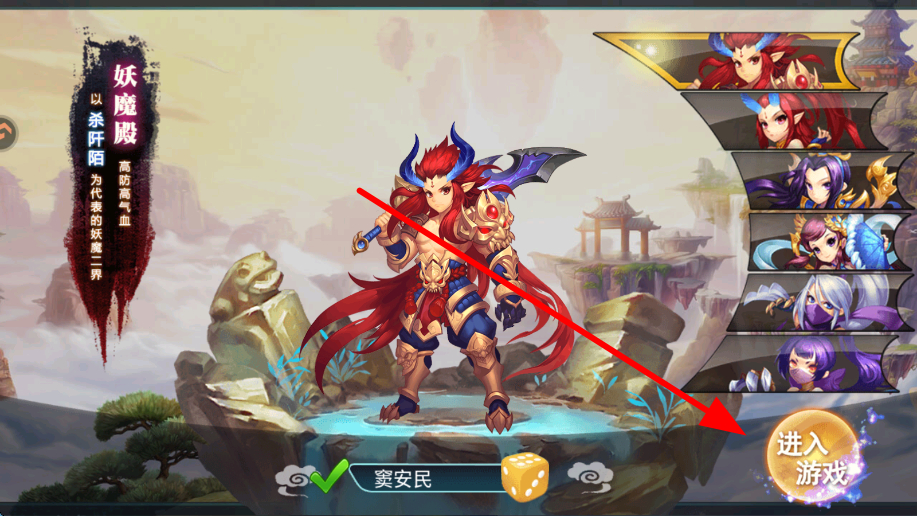1、新人首先在角色选择界面,创建挑选如妖魔殿等门派的角色,选择好后点击进入游戏,开启在妖神传的仙侠冒险之旅。
