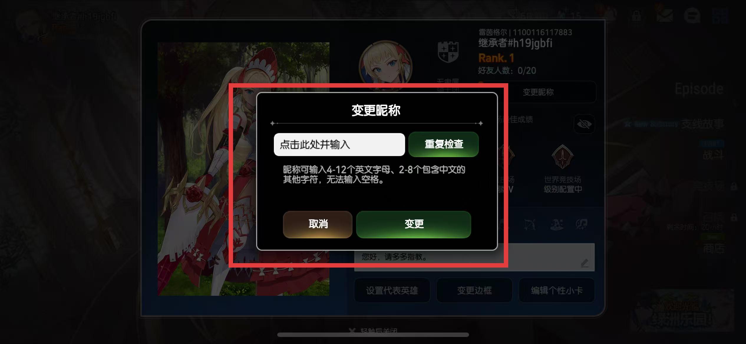 4、点击重复检查确认昵称是否可用,点击变更按钮,即可完成昵称修改。
