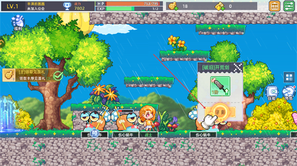 1、在自定义角色界面选择形象,确认后点击开始冒险,进入游戏关卡。