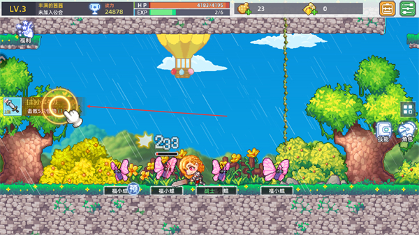 4、释放技能攻击野怪,完成击退5只怪物任务,积累经验提升至4级。