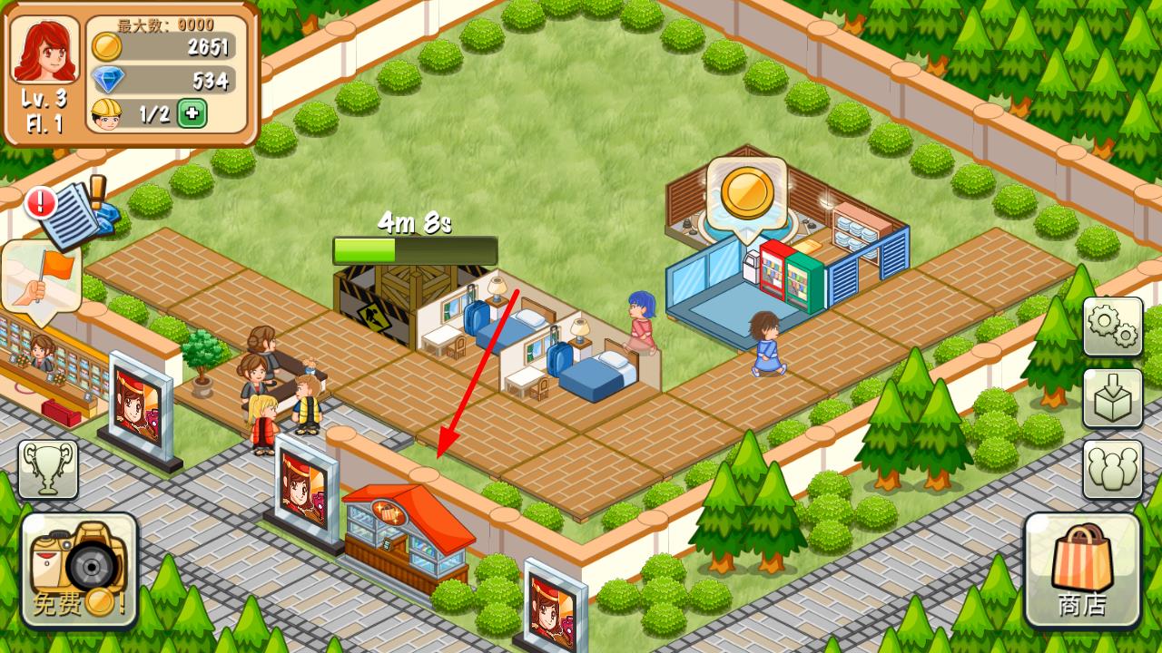 2. 在出现前台游客排队的情况下,资金可以优先于提升等级,建造客房缓解客流,提升等级可以获得更大的土地面积,也可以提升游客最大金币数和消费次数(每提升1级,最大金币数+20,每提升5级,消费次数+1)