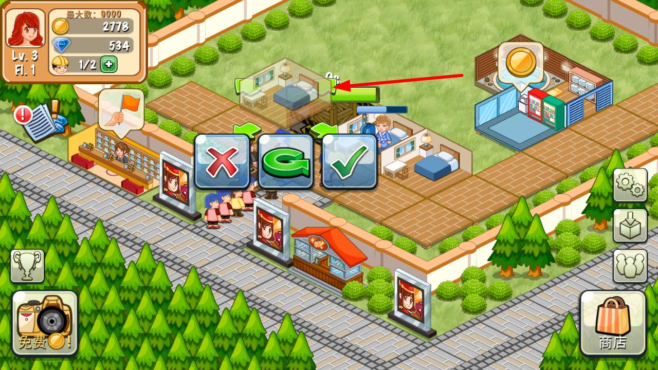 2.使用道具提升客房的魅力值(后期道具充足时再做)