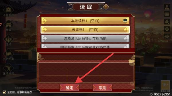 3、呈现了读取以及界面里的读档相关功能提示,比如本地读档、云读档等,点击确定后方可进入到场景内。