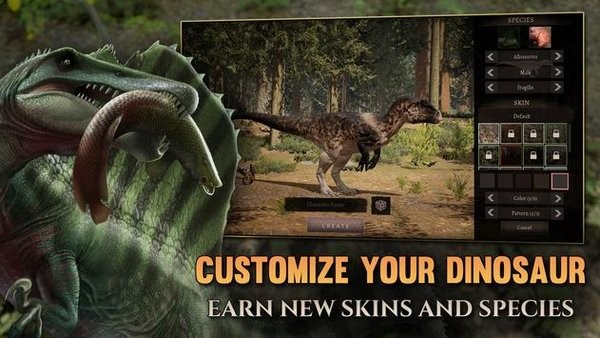 4、超过上百种恐龙可以选择,再现它们的生活情境,诺大的森林地图打造一起探索。