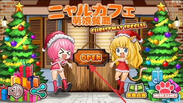 2、界面包含OPEN、免費點券、MOREGAME!等交互元素,玩家需要点击OPEN进入到场景内进行游玩。