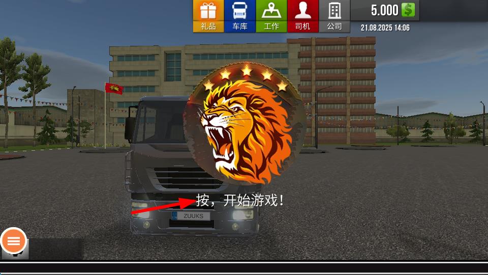 1、进入游戏时看到屏幕上狮子图标界面,点击开始游戏。