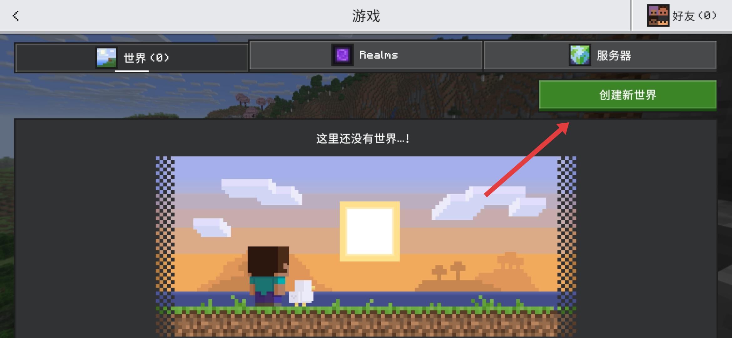 1、进入游戏主界面的世界标签页,点击右侧绿色创建新世界的按钮,启动世界创建流程。
