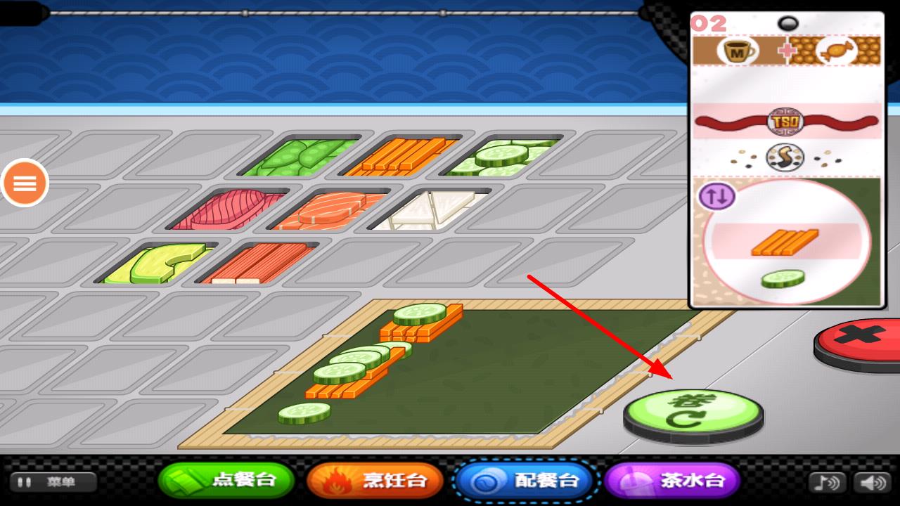 点击游戏上面的寿司制作有相关寿司制作流程,选择好所需的材料;