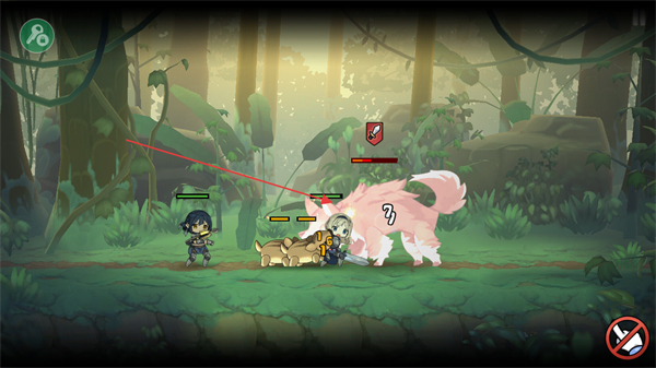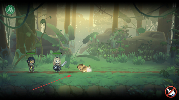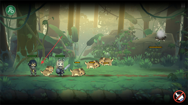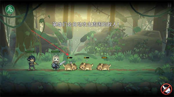 1、英雄会自动攻击周围敌人,操控角色在森林场景中前进,与小动物敌人战斗。