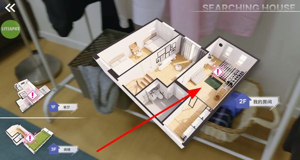 2、查看房屋的分层布局,找到带有提示标识的区域,选择对应楼层的房间,进入目标区域来推进探索。