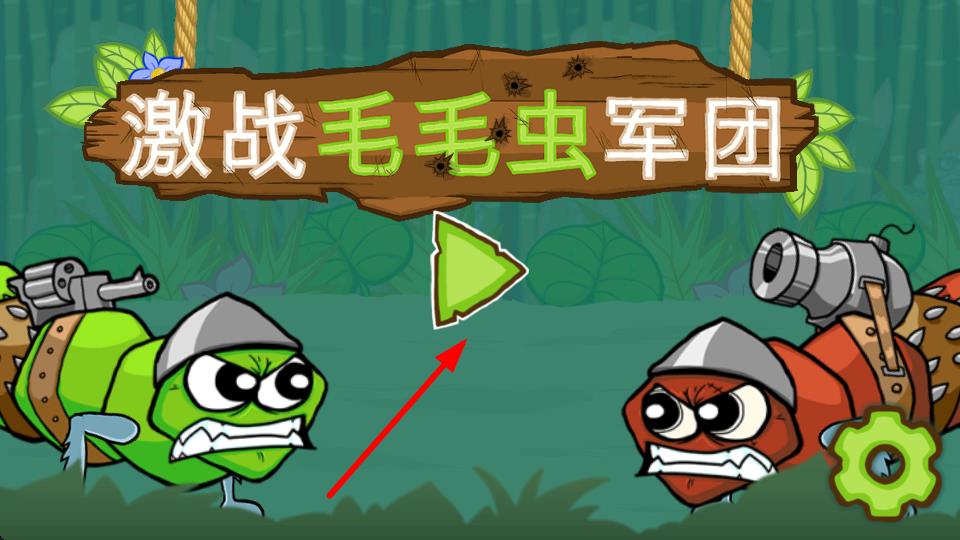 1、打开激战毛毛虫军团游戏,进入初始界面,会看到界面中有绿色开始标识,点击它进入游戏模式选择界面。
