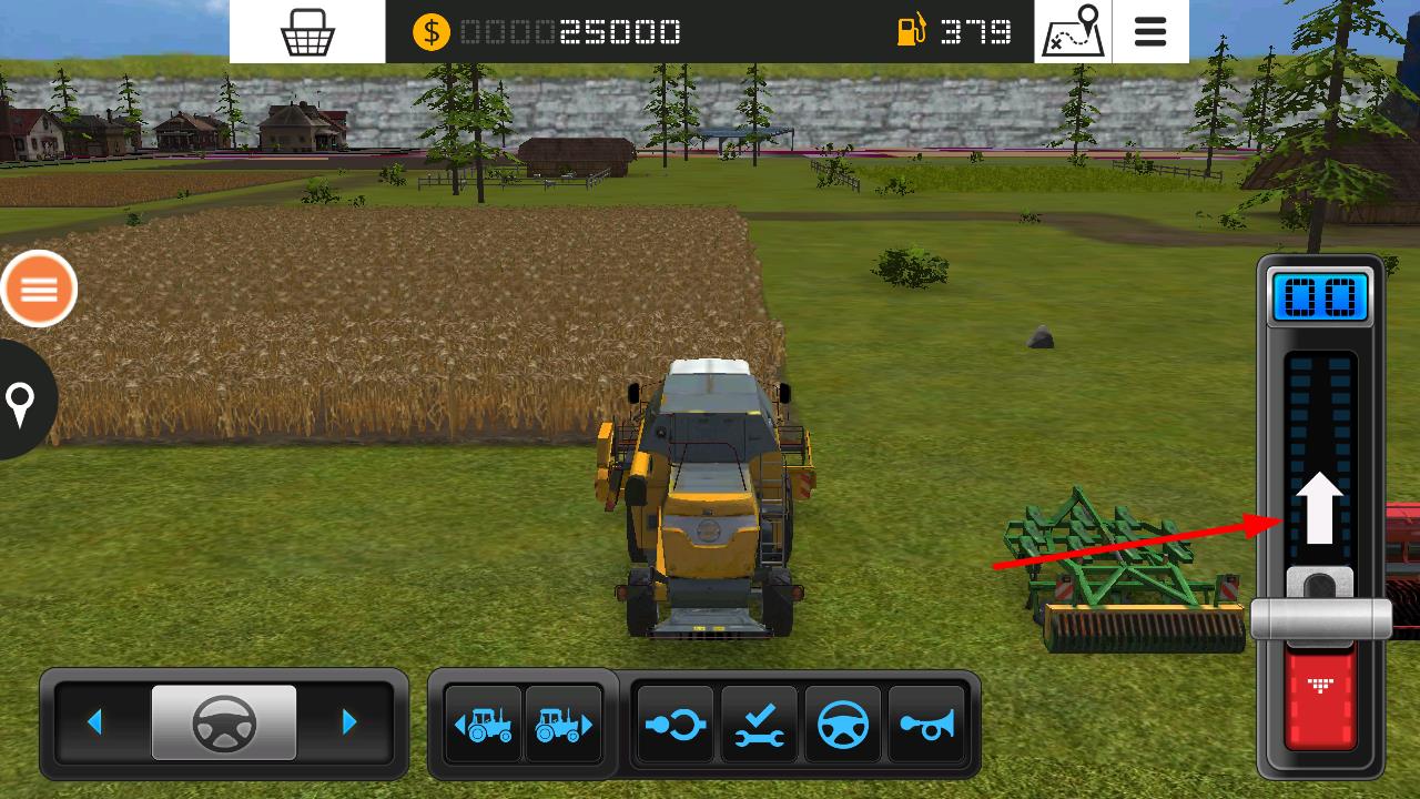 1、操控农机时屏幕右上方代表游戏货币数量,同时关注油量显示,若油量不足,农机无法工作,可通过屏幕右侧的类似操作杆装置,控制农机的升降等动作。