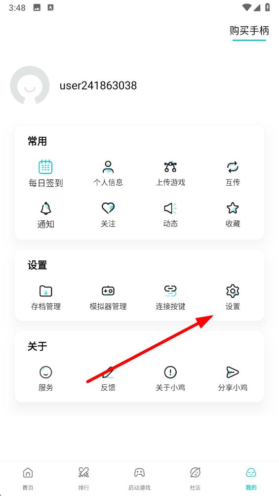 1、打开小鸡模拟器应用进入主界面,点击底部导航栏最右侧的我的图标进入个人相关页面。