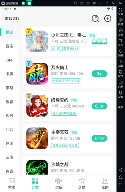 2、点击分类选项可以进入游戏大厅的位置,在这里可以根据游戏类型进行筛选,帮你快速找到心仪的游戏;