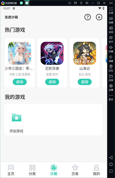 3、点击沙箱功能进入变速沙箱功能界面,在这里有许多可以变速的游戏自由选择,让你体验不一样的游戏玩法;