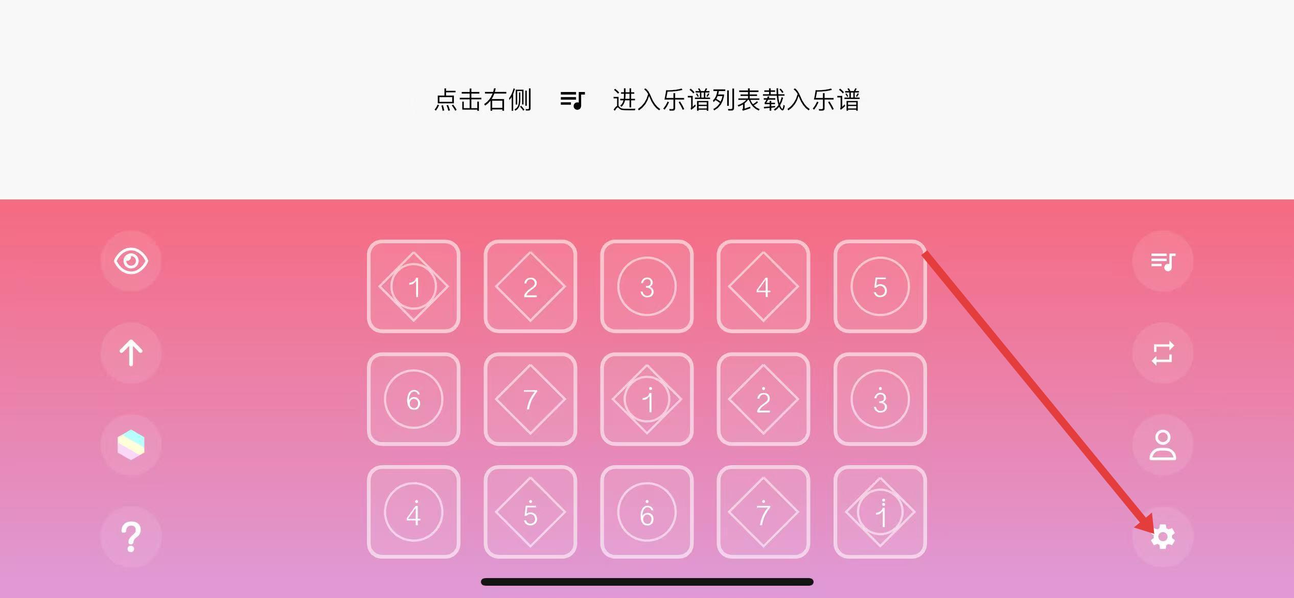 1、进入光遇乐谱弹奏界面,点击右侧设置图标。