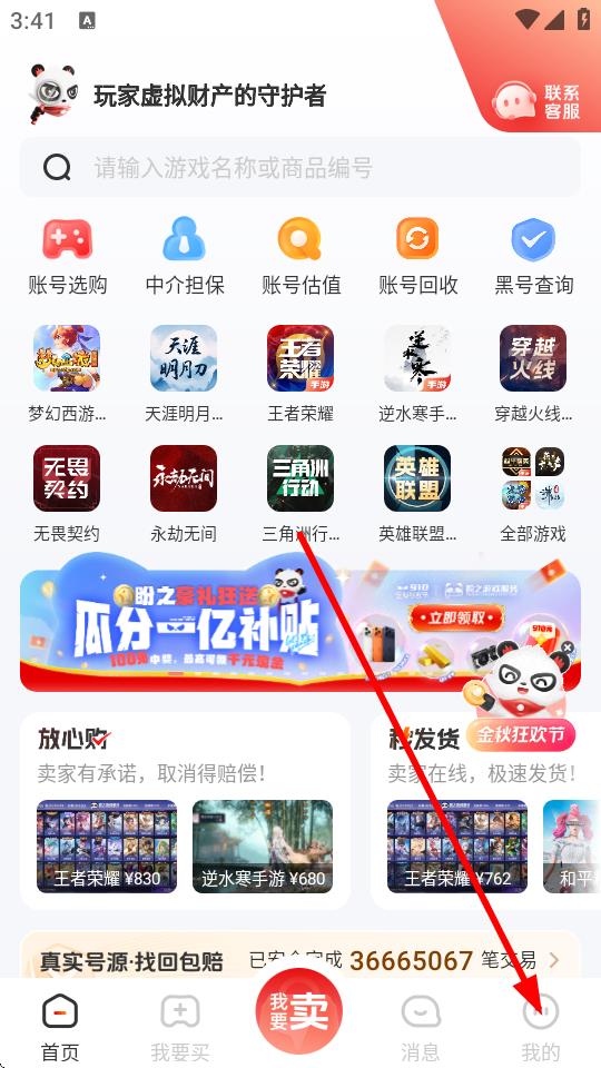 1、页面中将会看到有超多的游戏账号可以交易,如果你要账号交易点击中间这里进入交易页面;