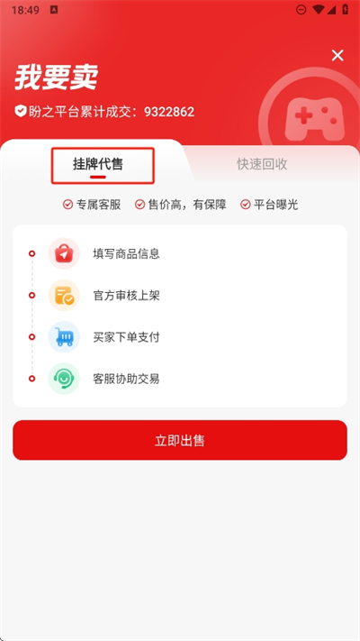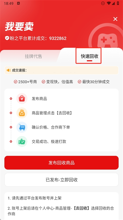 3、而快速回收是将自己的账号可以直接进行回收,发布后会有想要回收的用户前来联系自己进行快速回收;
