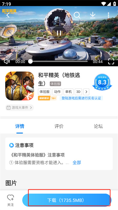 5、点击该游戏后将会看到游戏的详情、评价、论坛和评分,同时还能看到开启游戏模拟器的温馨提示(新手可仔细阅读);