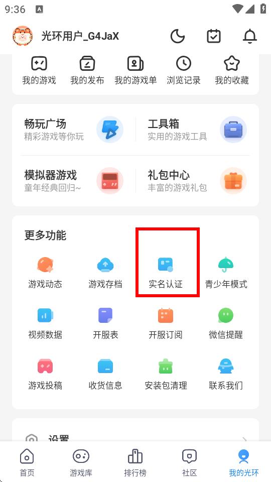 2、在个人界面中找到更多功能板块,点击其中的实名认证按钮。
