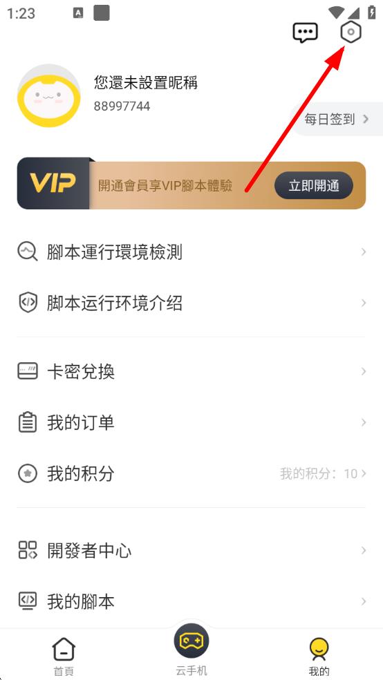 1、打开鸟人助手应用,点击底部导航栏中的我的,进入个人页面,点击右上角设置图标。