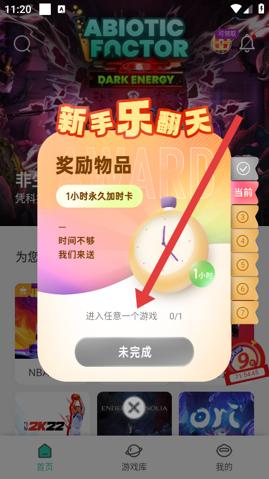 3、而加时卡需要完成进入任意一个游戏的新手任务,获得1小时永久加时卡,后续还有其他任务来解锁时长。