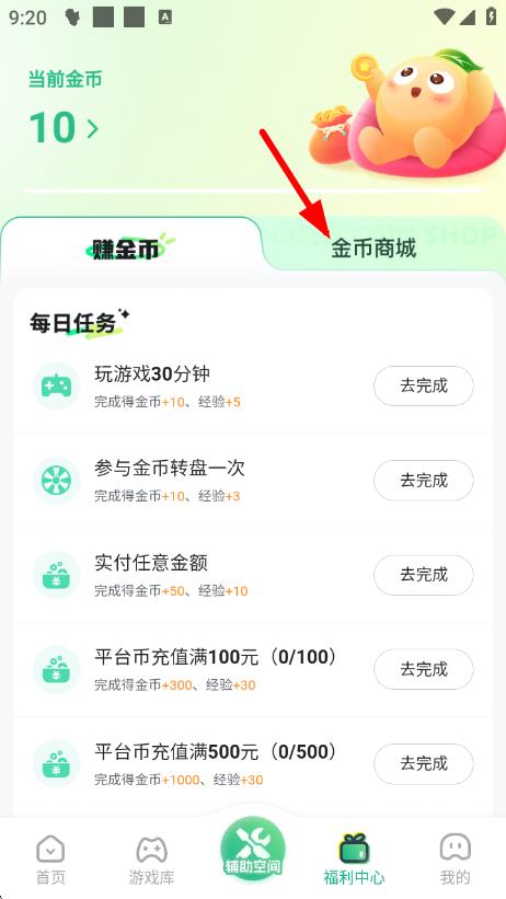 2、在福利界面中,点击金币商城选项,切换到金币兑换的相关页面。