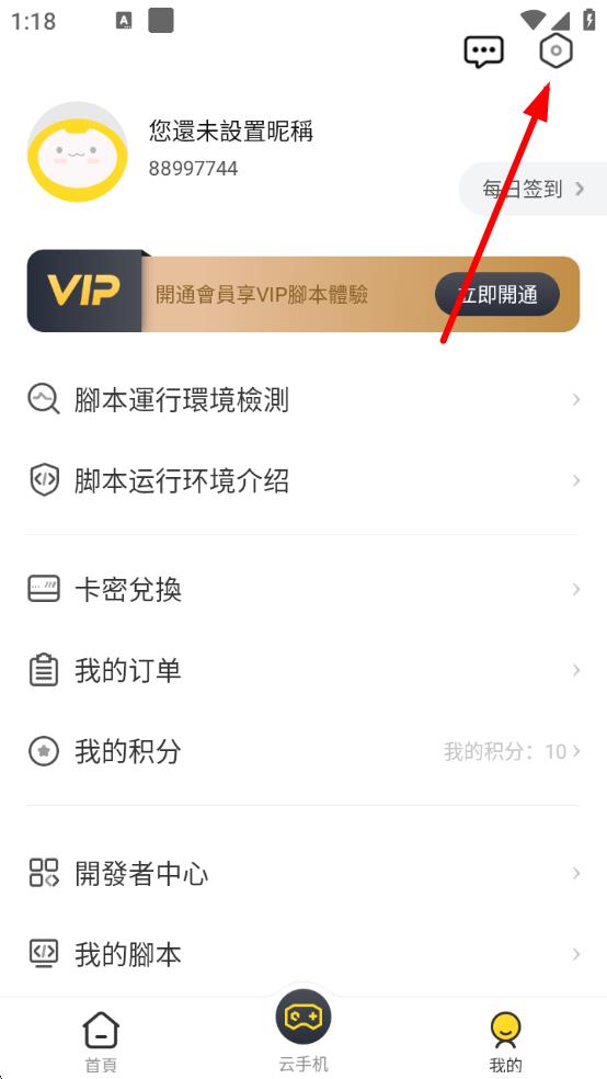 1、打开相关应用,点击页面右上角的设置图标,进入设置界面。
