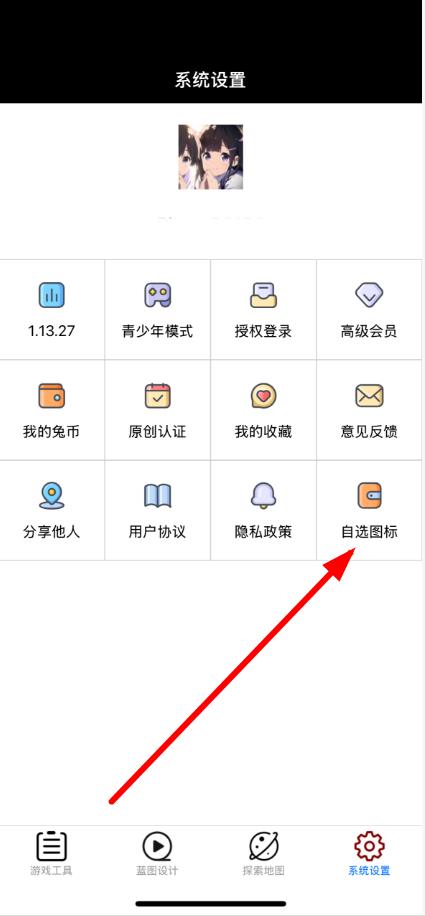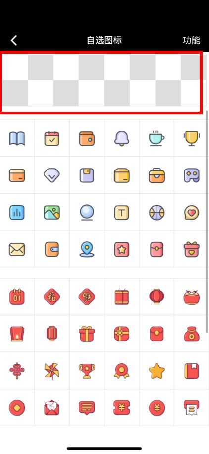 3、进入自选图标界面后,点击上方需要更换图标的对应位置。