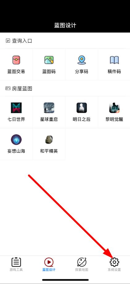 1、打开顽皮兔应用,进入蓝图设计界面,点击底部导航栏中的系统设置。