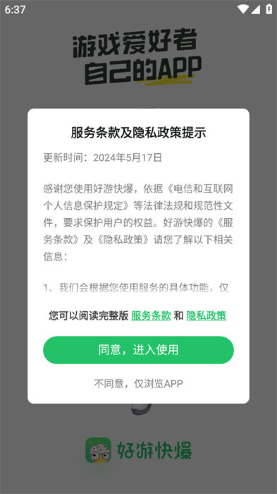 1、打开软件之后阅读隐私政策和用户协议,点击同意之后就能进入到软件;