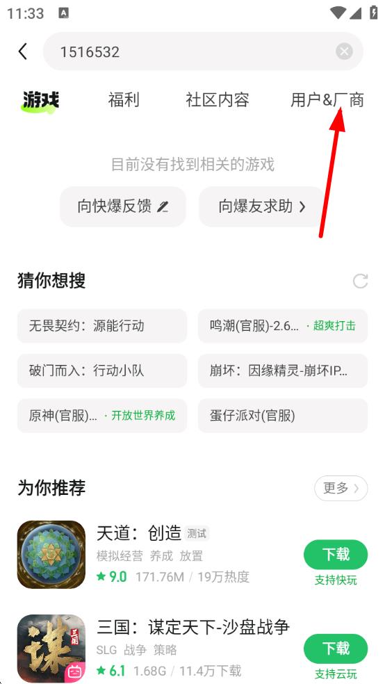3、在搜索结果页面,点击用户厂商选项卡,即可查找并找到对应的好友。