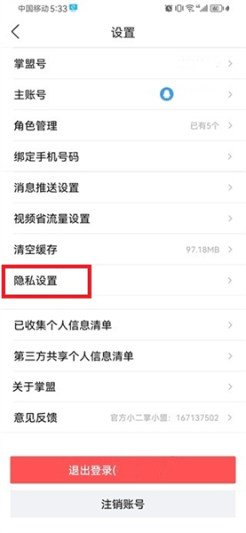 3.在弹出的页面下滑找到“隐私设置”并点击;