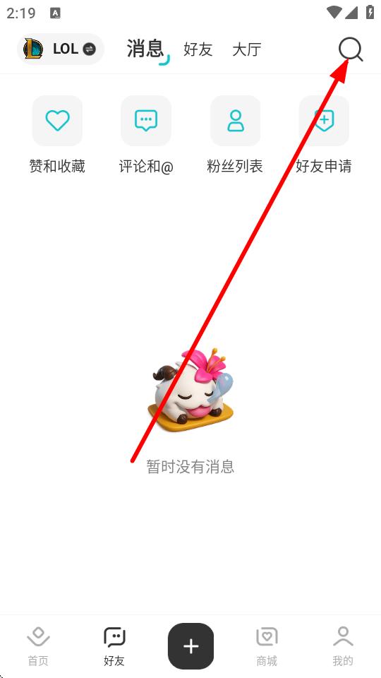 1、打开掌上英雄联盟APP,点击底部导航栏中的好友选项。