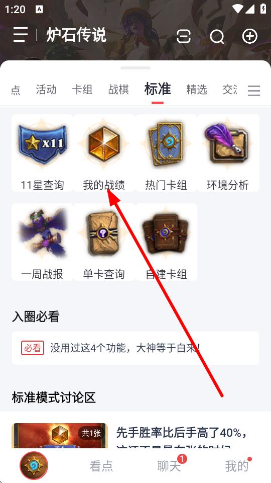 3、在标准模式页面里,找到并点击我的战绩选项。