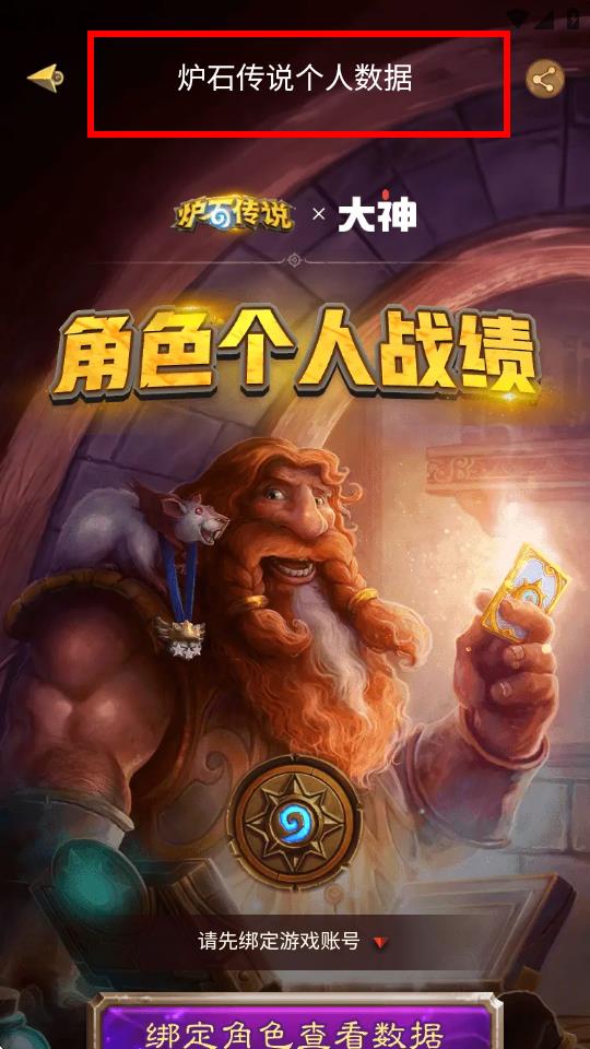 4、若未绑定游戏账号,需先点击绑定角色查看数据,绑定炉石传说游戏账号,绑定成功后即可查看个人战绩数据。