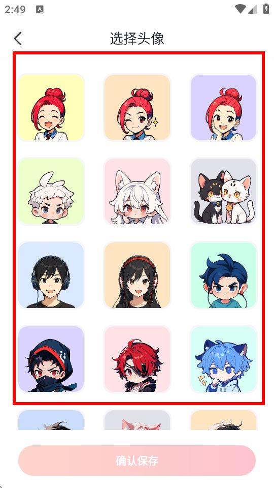 4、进入选择头像界面后,从提供的头像库中选择你喜欢的头像,选择好头像后,点击确认保存,即可成功更改头像图片。
